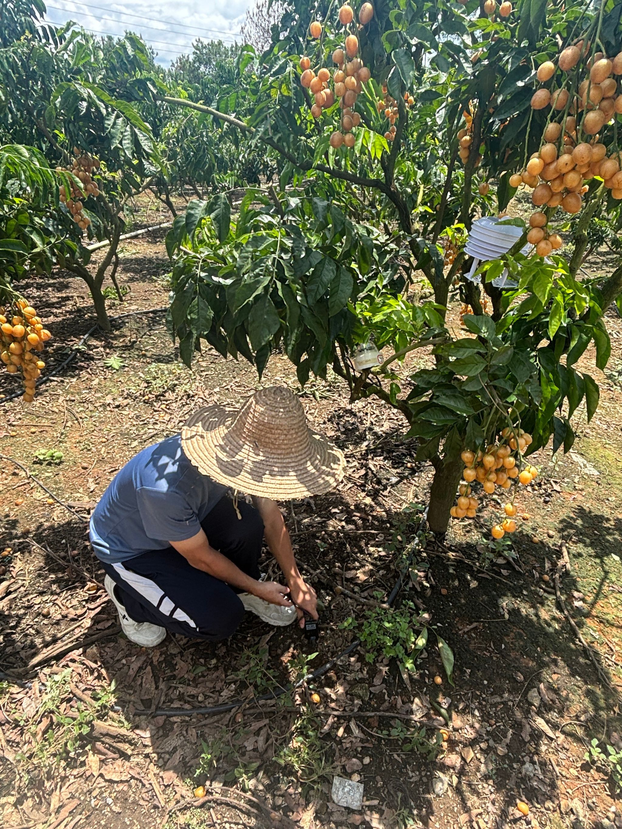 团队成员与当地农户深入交流与实地调研,详细了解黄皮种植的传统技艺和常见问题。并且通过了解无核黄皮母树的生长环境及各项生长数据,复制最佳生长数据到其他黄皮生长环境中,为黄皮提供了生长最佳环境数据的参考,也为后续智慧农业方案的精准化提供了科学依据。